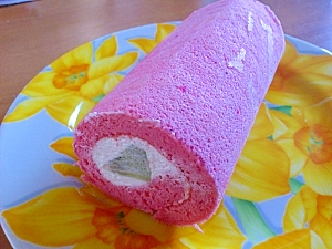 ミニロール ピンクのイチゴ生地で春爛漫 レシピ 作り方 By 麻呂0461 楽天レシピ